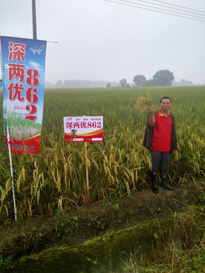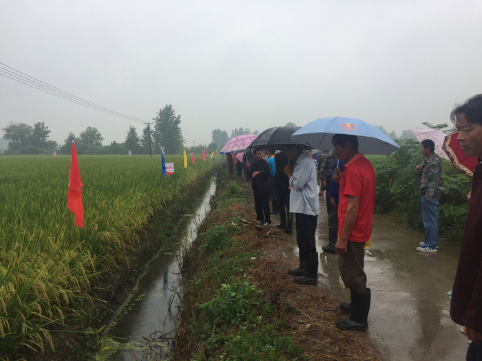 在觀摩示范田現(xiàn)場(chǎng),與會(huì)代表們有的親自下田數(shù)分蘗,有的摘下稻穗察看籽粒大小、長(zhǎng)度和結(jié)實(shí)率,不時(shí)點(diǎn)頭贊許。通過(guò)此次考察“深兩優(yōu)862”的田間種植表現(xiàn),讓大家真切地認(rèn)識(shí)到該品種分蘗強(qiáng)、有效穗多、抗倒和結(jié)實(shí)率高等優(yōu)點(diǎn),進(jìn)一步提高了農(nóng)戶種植的決心和經(jīng)銷商推廣的信心。尤其在得知該田塊是由農(nóng)戶粗放種植的,大家都感覺(jué)非常震撼,踴躍估產(chǎn),結(jié)果卻出奇的一致:畝產(chǎn)1600斤以上。種植大戶劉學(xué)軍自己也表示今年產(chǎn)量的確遠(yuǎn)超預(yù)期,還省工省力,打藥少,好管理,明年自己的幾百畝就種植深兩優(yōu)862。