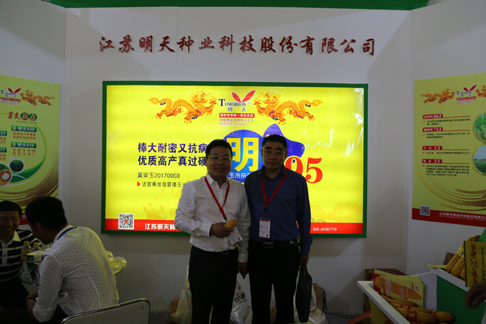 明天種業在本次“雙交會”上展示了明天695、明科玉77、明科玉33等多個玉米新品種,受到了廣泛關注和好評。同時,在商河展示田中,明天種業明科玉77被農業部專家組評為“明星品種”,明天695、明天636被評為“優秀品種”。展會期間,農業部種子管理局局長張延秋、中國種子協會副會長兼秘書長蔣協新、中國種子協會顧問組組長李立秋、北京農林科學院玉米研究中心主任趙久然等領導、專家巡視了明天種業展位,聽取匯報,對明天種業展示的玉米新品種給予肯定,并予以指導。