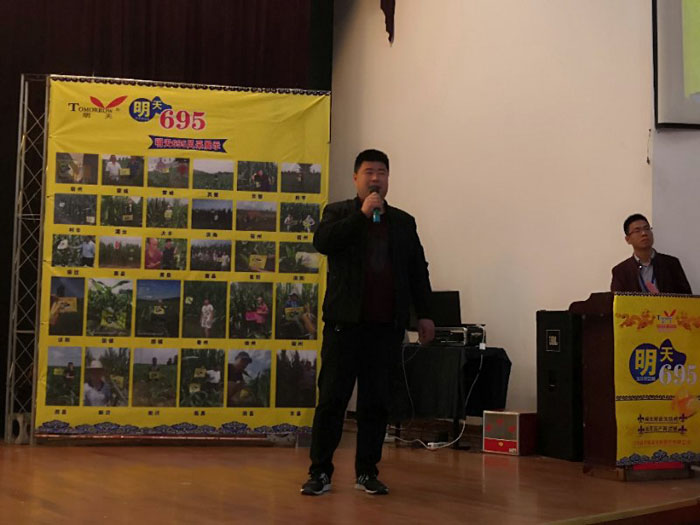 明天695是江蘇明天種業自主選育的優質高產多抗的玉米品種,先后在黃淮海各省通過引種備案。在安徽各區域及黃淮海各省經過多年試驗示范中,以優異表現已經得到了經銷商和農戶的青睞。本次會議,讓參與明天695基層推廣者匯聚一堂,在當前玉米種業寒冬新環境下,謀求發展。為明天695的營銷推廣出謀劃策;為做好明天695示范田建設,共同學習玉米高產栽培技術。堅信,有了我們一如既往的付出和努力,明天695玉米品種將推廣的更好,推廣的更穩,推廣的更久!明天695也將會用卓越的銷量和豐厚的利潤來回報我們!