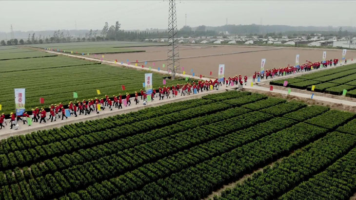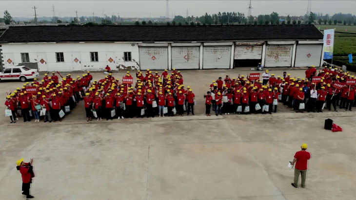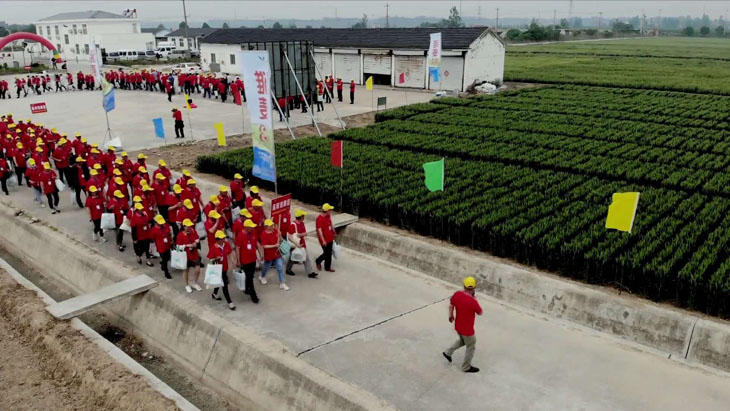 第三部分在所有觀摩環(huán)節(jié)結(jié)束后,所有參會人員以縣為單位集中在睢寧育種基地發(fā)曬場上,排成縱隊高喊“要想糧食堆成山,就種淮麥33”的口號。