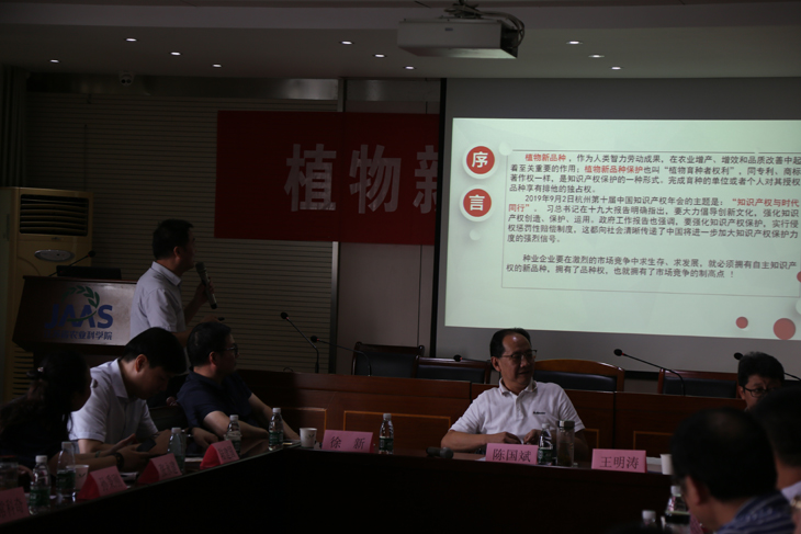 9月9日下午,由江蘇省種子管理站和江蘇省種業協會主辦,江蘇明天種業承辦的“植物新品種知識產權保護研討會”在江蘇省農科院蔬菜所會議室召開。會議邀請了江蘇省種子管理站、省農業農村廳綜合執法執法局、省內6家主要種子企業、部分縣級種子管理站和執法大隊、南京市中級人民法院知識產權庭、律師事務所及江蘇省行業協會等30人出席會議。會議主要就植物新品種知識產權保護方面出現的現狀以及遇到的困難開展了一系列的討論,并對此后如何解決處理這些問題提出了合理性的建議。會議由江蘇省種子管理站副站長陳國斌主持,江蘇省人大代表常務委員會委員顧正中研究員就即將出臺的江蘇省種子管理條例的修訂情況做了解讀。