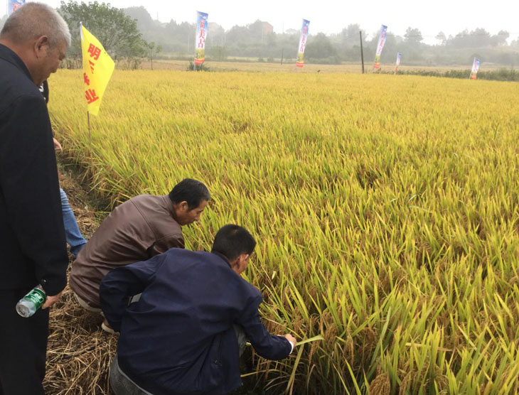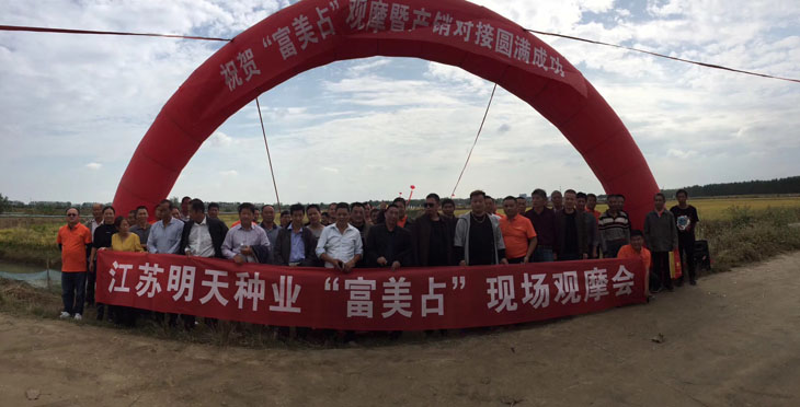 10月13日上午在武穴,來自鄂東南地100余名代理商、種田大戶乘坐大巴,一同前往武穴市四望鎮觀摩“富美占”示范片。田間觀摩由武穴代理商張磊主持,他主要從品種的播期、肥力運籌、田間表現等方面為大家做了詳細的介紹。在現場觀摩期間,有的參會代表在估算著產量,有的在討論品種的抗倒性為什么如此好,參會人員的互動讓原本安靜的田間,頓時變得喧囂起來!        在室內交流環節,首先由公司片區經理劉庚給大家做了公司發展概況以及富美占優勢的PPT分享,接著由武穴市四望農技站的伍站長發言,伍站長總就今年富美占的表現,以及與黃華占各方面的數據對比向大家做了介紹,總結而言就是富美占是一個有著很高推廣價值的品種,緊接著來自大金鎮的種田大戶周老板發言,周老板今年包了2800畝田,其中1500畝種植的是富美占,他根據自己種植該品種的切身體會與大家做了交流,會議室里頻頻爆發熱烈的掌聲。隨后武穴市農村農業局的趙局長就老百姓如何選擇品種,代理商如何推廣品種做了指示;會議最后,武穴市隆旺合作社的張總就富美占的定位,推廣思路以及大力推廣富美占的意義與參會代表進行了交流。由于武穴本地農戶對品種米質要求很高,為了打消大家的顧慮,我們在會議過程中穿插進行了現場打米的活動,將現場打出來的米分發給大家看,不論出米率,還是是粒型以及外觀,都得到了參會人員的認可,有的人說外觀油性比黃華占還好,還有人說比絲苗類的還好!為了讓參會代表全方位的體驗、了解富美占的米質情況,午飯時我們也安排大家品嘗了富美占的米飯,口感讓大家也都十分滿意!        此次會議的成功召開,意義深遠,“富美占”在對常規稻要求極其苛刻的地區得到廣泛認可。在現如今的水稻行情下,我們應該跳出慣性思維來分析品種和市場。用常規稻的思維來運作常規稻,此次會議更是進一步堅定了我們既定的推廣思路,相信以我們明天人“專業,專注,專誠”的行事風格,必將取得成功!