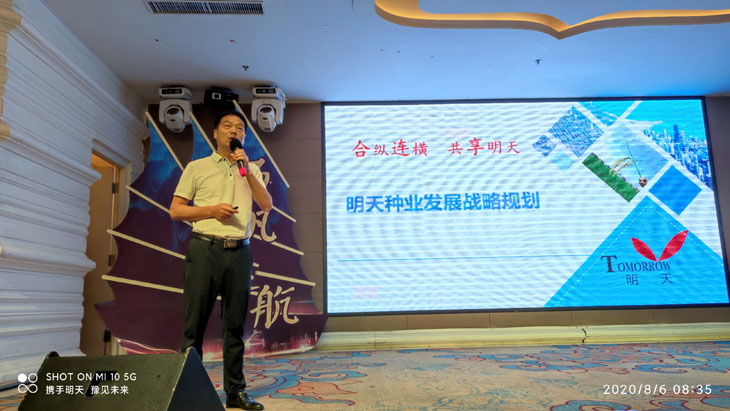8月5-6日,2020-2021年度河南明天“情聚花都,共創(chuàng)明天”政策發(fā)布大會在花都鄢陵隆重舉行。江蘇明天種業(yè)科技股份有限公司副總經(jīng)理胡玉成、總經(jīng)理助理馬勇、市場運(yùn)營中心技術(shù)部于國利、吳金鑫,河南明天總經(jīng)理劉路坡、鄢陵縣種子管理站領(lǐng)導(dǎo),以及來自全省各地的100余位銷售精英相聚在美麗的花都鄢陵,共商明天種業(yè)品種的推廣和發(fā)展及政策發(fā)布大會。