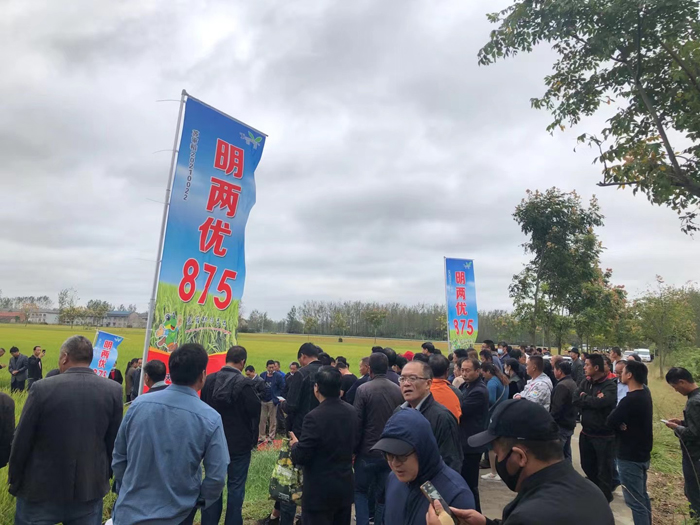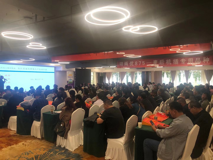 金桂飄香,豐收在即。公司于10月7日-8日在江蘇省沭陽縣隆重召開 “明兩優(yōu)875”麥后機插新品發(fā)布會暨田間觀摩會議。參加會議的有江蘇明天種業(yè)科技股份有限公司代表,各縣市經(jīng)銷商、種植大戶、育秧合作社代表共計200余人參加會議。