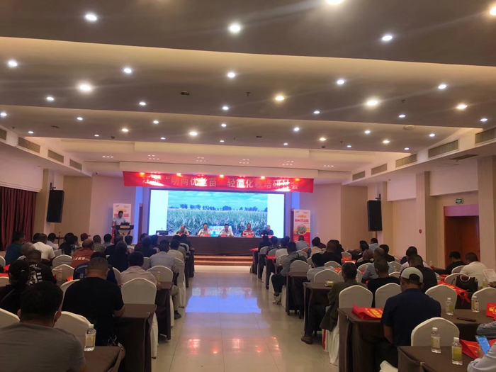 金秋九月,金黃的稻谷隨著秋風(fēng)翻起金波,豐收在即。公司于928-29日在江蘇省泗陽縣新世界大酒店隆重召開 “明兩優(yōu)絲苗”輕簡化栽培研討會暨田間觀摩會議。會議有幸邀請到泗陽縣農(nóng)業(yè)農(nóng)村局陳春化局長致辭,泗陽縣作栽站范輝站長參加;參加會議的還有江蘇明天種業(yè)科技股份有限公司副總經(jīng)理胡玉成、總經(jīng)理助理?xiàng)詈2肮敬恚骺h市經(jīng)銷商、種植大戶、育秧合作社代表共計200余人參加會議。