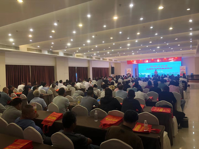 接著由盧偉林經(jīng)理向參會代理商、種植大戶、育秧合作社代表介紹明兩優(yōu)絲苗的特征特性以及最近幾年各縣市種植田間表現(xiàn)情況。盧經(jīng)理介紹到隨著土地流轉(zhuǎn),種植大戶越來越多,雜交水稻移栽成本居高不下、人工緊缺,大戶用工難、收益低。明兩優(yōu)絲苗的生育期、抗倒性、抗病性及產(chǎn)量結(jié)構(gòu)就特別適合當(dāng)下種植大戶和育秧合作社做雜交稻機(jī)插種植。因此雜交水稻的輕簡化栽培勢不可擋,明兩優(yōu)絲苗應(yīng)勢而出,適時填補(bǔ)了江蘇淮北雜交水稻機(jī)插合法品種的空白。同時詳細(xì)介紹了明兩優(yōu)絲苗的栽培管理措施。