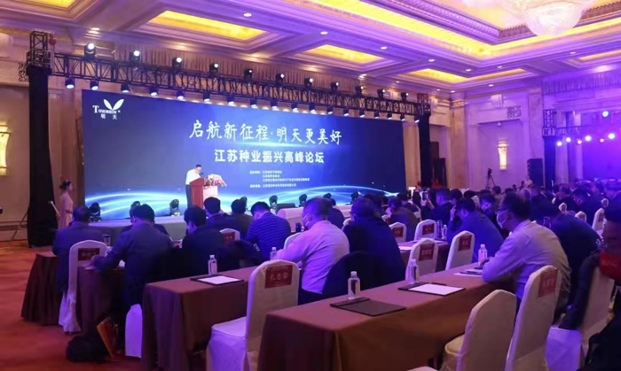 種子是農業的“芯片”,關系國家農業產業競爭力。11月20日下午,由江蘇省種子管理站、江蘇省種業協會、江蘇省主要農作物種子產業技術創新戰略聯盟主辦,江蘇明天種業科技股份有限公司承辦的“啟航新征程 明天更美好”江蘇種業振興高峰論壇暨明天種業成立20周年慶典在江蘇南京隆重舉行。出席本次會議的有中國工程院院士萬建民、中國水稻所所長、中國工程院院士胡培松、中國工程院院士張洪程、中國種子協會副會長兼秘書長蔣協新、中國種子協會副會長鄧光聯、江蘇省農業農村廳二級巡視員俞衛東、江蘇省農科院科學院院長易中懿、南京農業大學副校長丁艷鋒等專家領導,還有來自農業農村部門、科研院所、高等院校、種子企業的專家等300余名代表齊聚一堂,就“十四五”開局之年,江蘇種業如何打好“種業翻身仗”,實現江蘇種業振興進行交流研討。